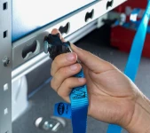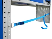 Syncro System offre anche cinghie, ganci e occhielli fermacarico per mantenere stabile il materiale durante il trasporto. Questi accessori per furgoni sono compatibili con i binari di ancoraggio e permettono di fissare valigette, strumenti o componenti voluminosi in modo rapido e sicuro.