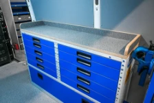 Tutti i ripiani per furgoni Syncro System possono essere personalizzati per adattarsi alle diverse configurazioni di allestimento. Ogni banco o piano di lavoro può essere installato sopra moduli esistenti come cassettiere, scaffali o armadi Syncro System, creando una postazione di lavoro stabile, sicura e perfettamente integrata nel veicolo.